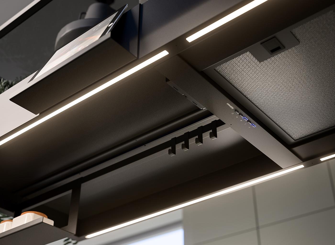 Enerji Tasarruflu LED Aydınlatma: LED ışıklarla mutfak alanını aydınlatırken enerji tasarrufu sağlar, verimli ve uzun ömürlüdür.