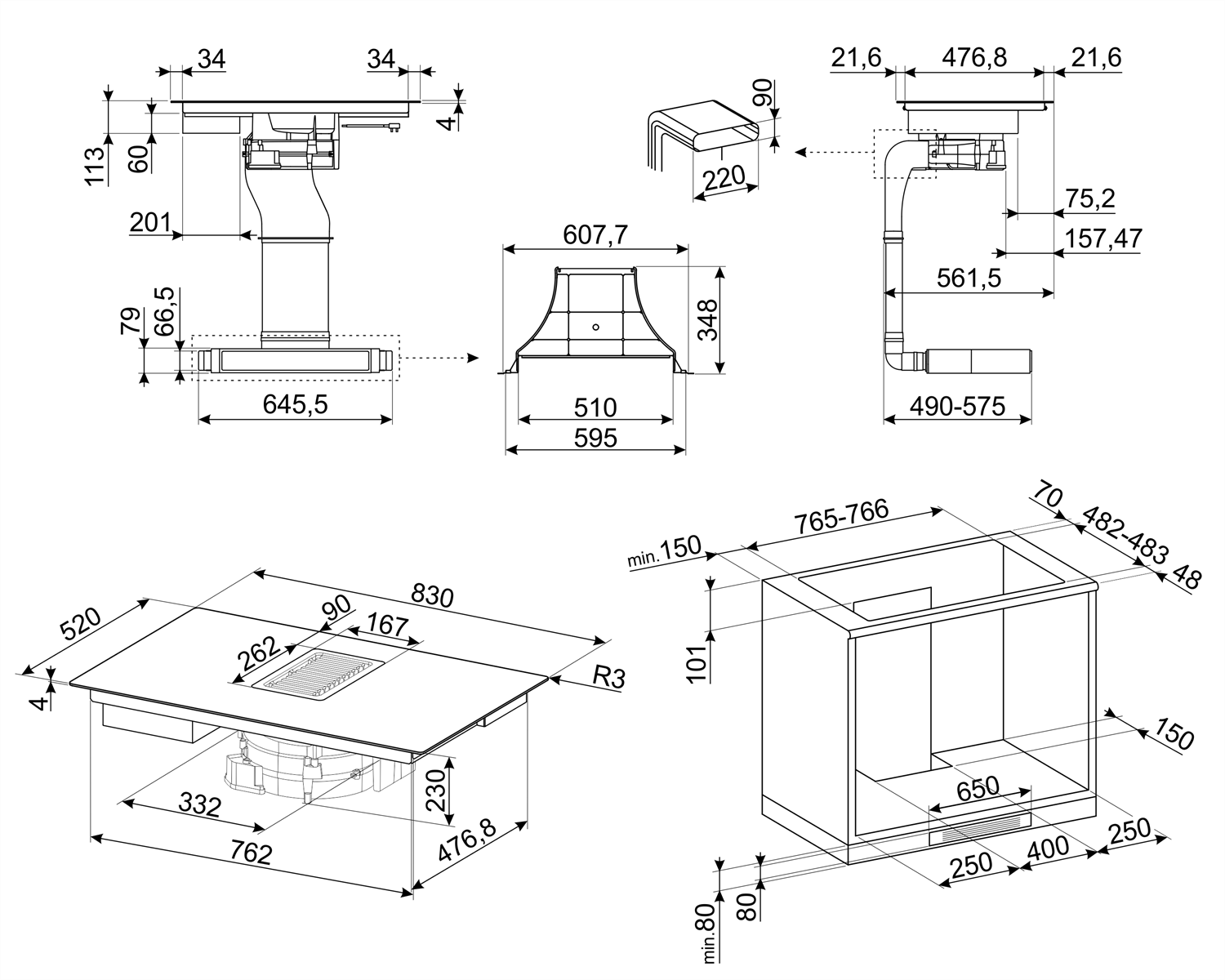 LİNEA ANKASTRE DAVLUMBAZ ENTEGRELİ İNDÜKSİYONLU OCAK - SİYAH CAM SERAMİK