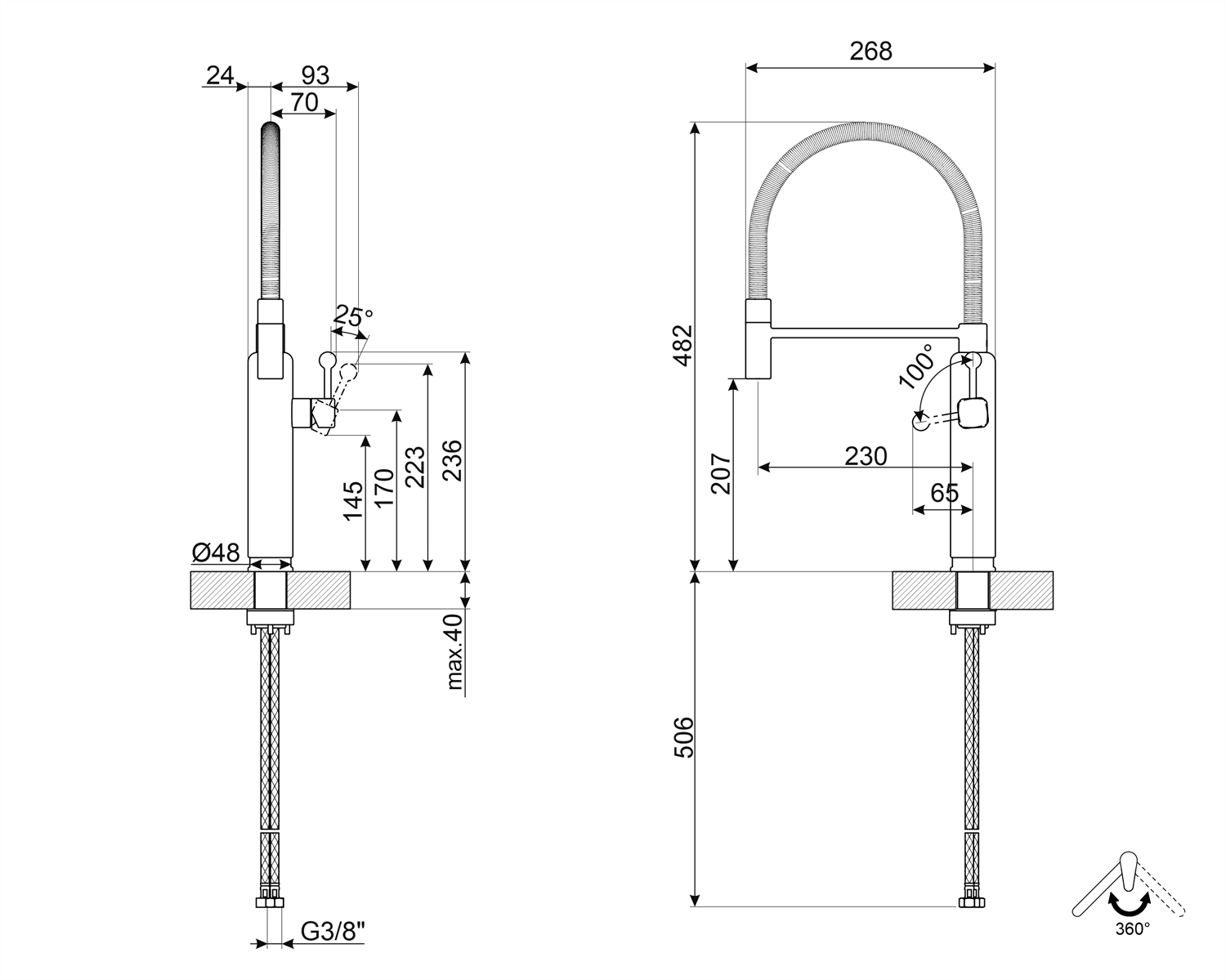 Esnek hortum uzunluğu:450 mm