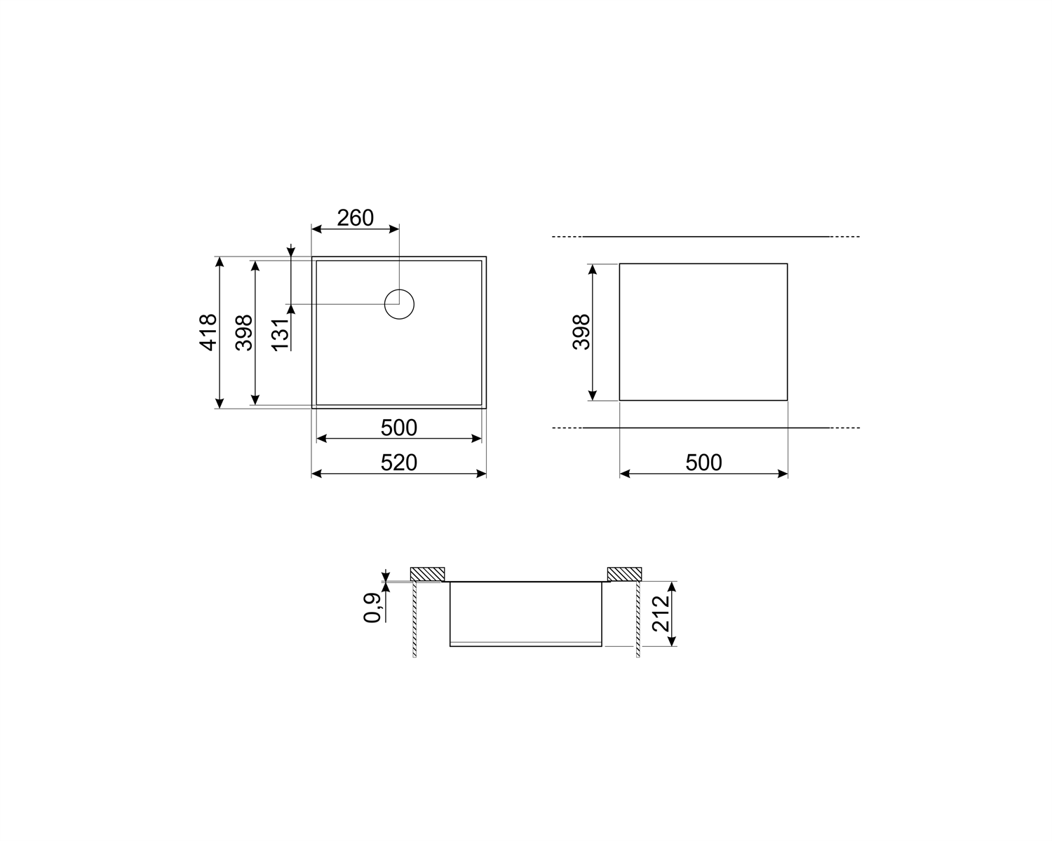 Tezgah altı kesim ebatı (mm):398*500 mm